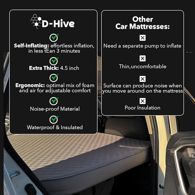 - THOUGHTFULLY DESIGNED: experience comfort on the road with our custom-sized SUV air mattress designed specifically for SUV. Its effortless inflation and customizable softness offer an optimal sleeping pad experience in your car.