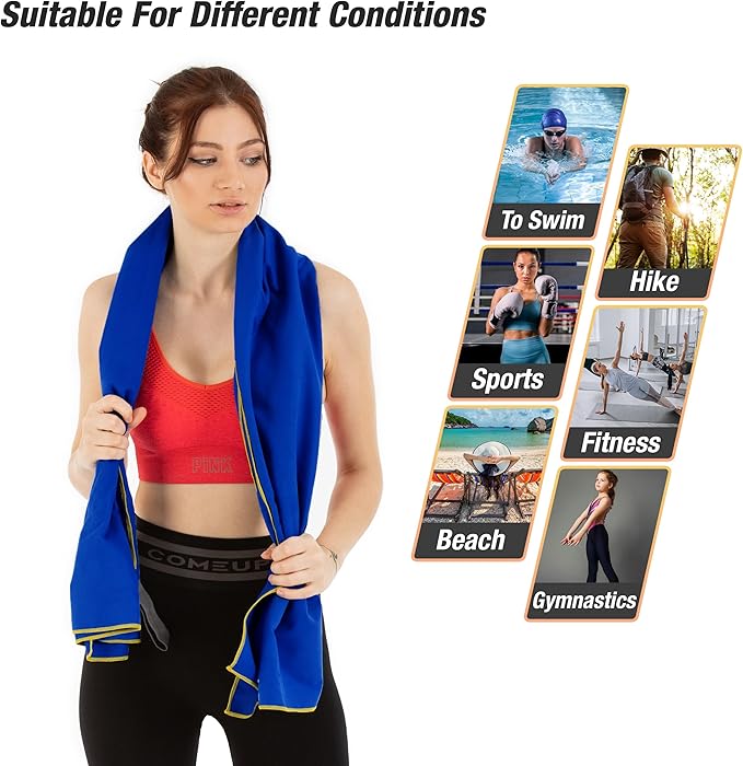 - 2 Size in 1 Pack: This set of travel towels has 2 sizes: (60 * 30 inches) is suitable for travel, beach, Yoga, camping and other outdoor activities, (32 * 16 inches) is suitable for fitness, running, head and face