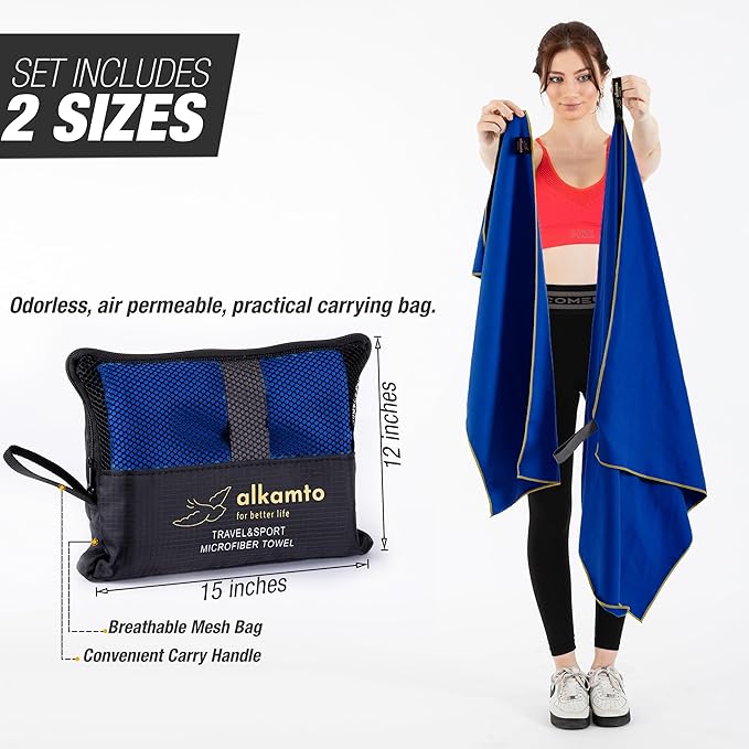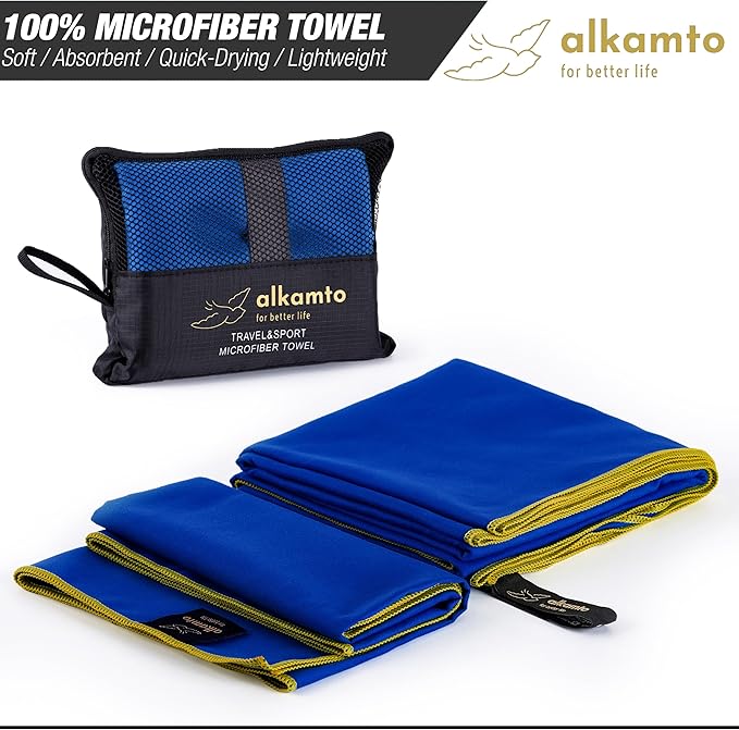 - LIGHTWEIGHT & COMPACT: Alkamto Microfiber towel for travel & sports made to save the space and to be more useful for traveling, professional sports training, and everyday use. Professionals choose it for compact size and small weight. The weight of dry microfiber towel five times less than regular towel.