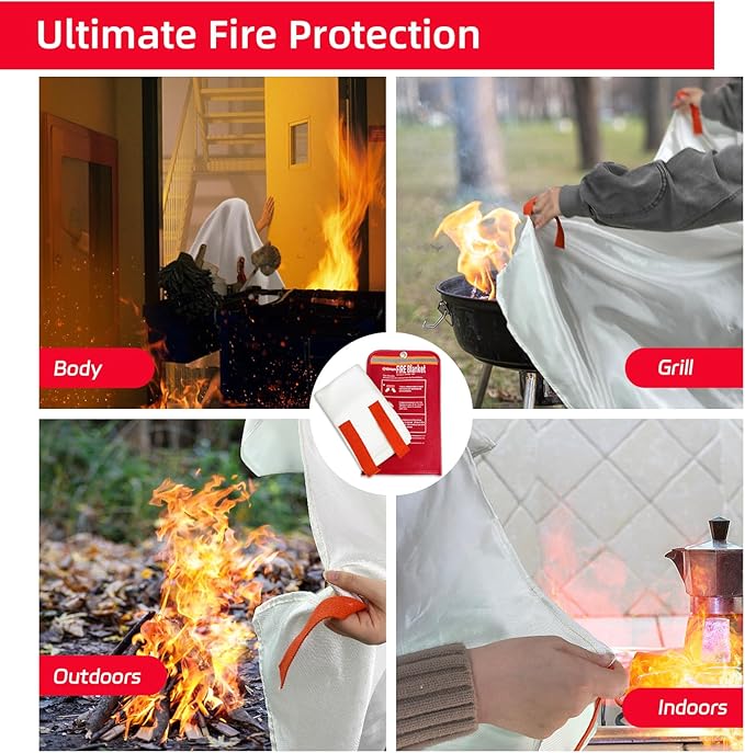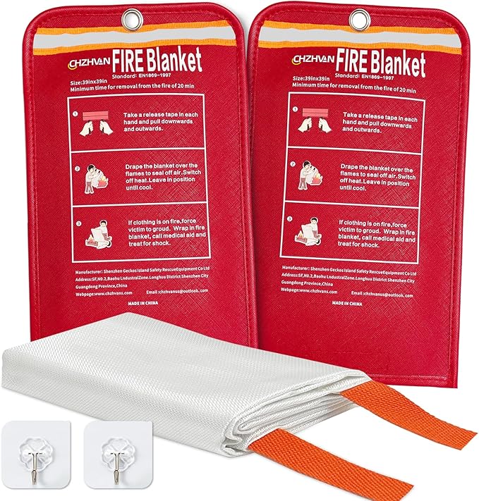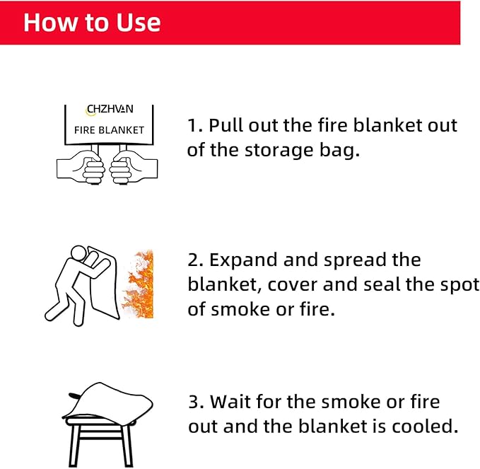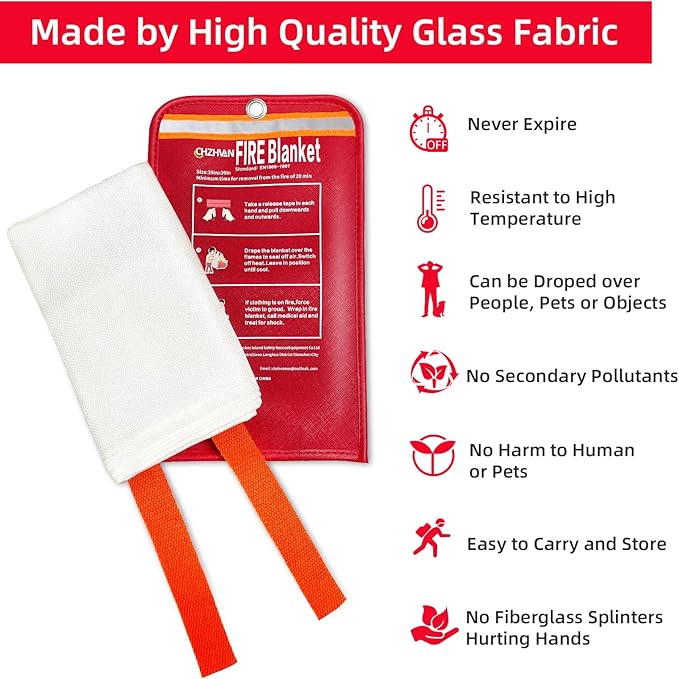 - A Must Have in Every Kitchen & Home: CHZHVAN emergency survival fire blanket cuts off oxygen supply to flames, tackling liquid, grease, and various fire types. It is an essential home safety device for emergencies. Ideal for kitchen, fireplace, grill, car, office, camping and so on. As a emergency survival fire blanket, every family need it, but we hope you will never use it.