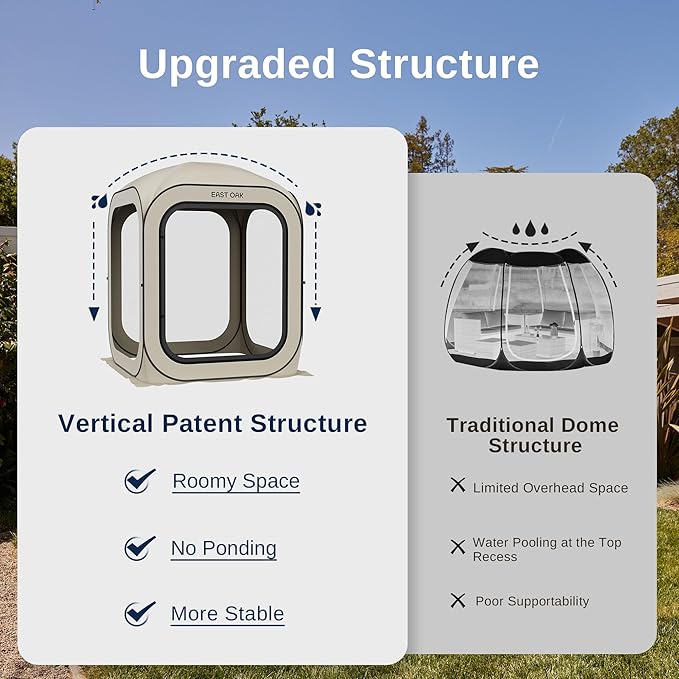 - ๐๐๐ด-๐ฃ๐ฟ๐ผ๐ผ๐ณ & ๐ฉ๐ฒ๐ป๐๐ถ๐น๐ฎ๐๐ฒ๐ฑ: The EAST OAK portable pop-up screen teent features a 4-sided B3 fine mesh design for 360ยฐ perfect ventilation to protect you from mosquitoes, bugs and anything the outdoors can throw at you. The tent body is made of high-quality Oxford fabric with anti-UV silver coating to achieve all-day UPF 50+ UV protection. Perfec for picnics, camping, and the beach