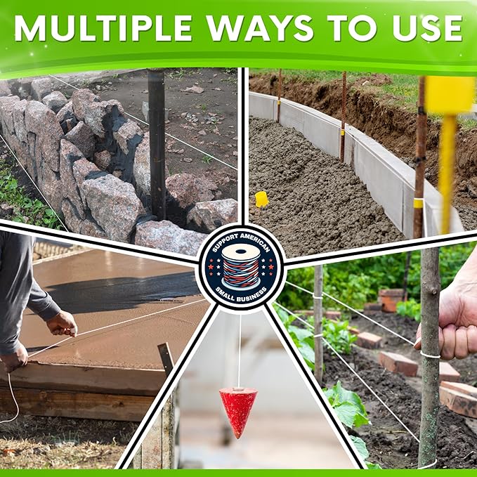 - Bright colors - Each braided masonry line roll is fluorescent and easy to see. Perfect outdoor string for use as landscape twine, property line markers, construction twine, or marker string.
