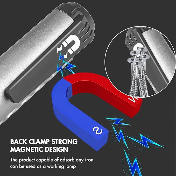 - 💡[Magnetic Base & 360° Rotatable]: This flashlight has a magnetic base, which can be adsorbed on any iron surface. The handle is 360° rotatable, which can be adjusted to different angles. You can use it as a handheld flashlight or as a table light. It is very convenient to use.