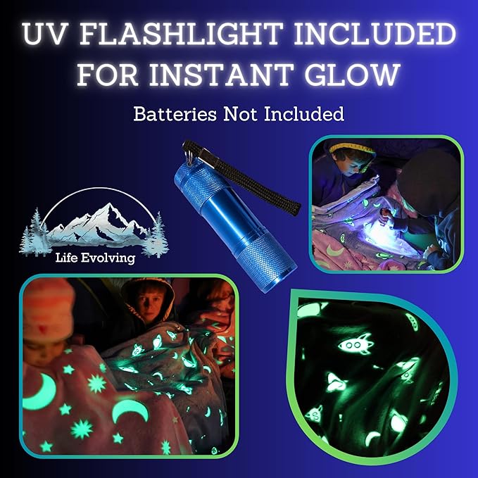 - UV Flashlight To Give Your Adventure An Instant Glow Up: Illuminate the night with the UV flashlight that instantly brings the glow of this travel sleep sack to life. Watch as the designs light up, turning your stay away from home into a magical experience for the whole family. *Batteries not included*