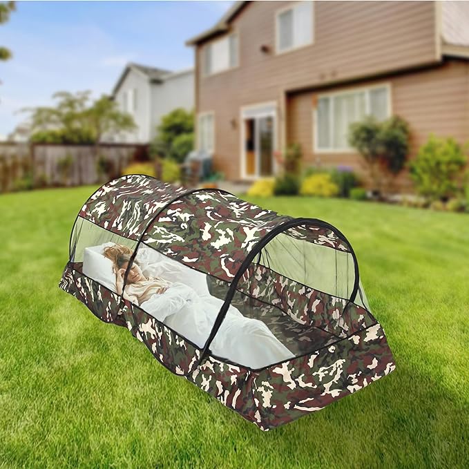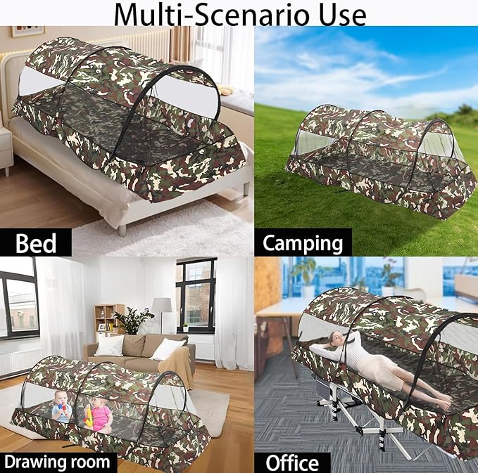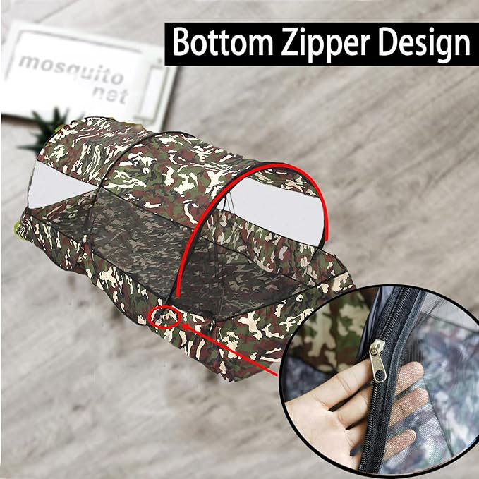 CMINGJ Portable Mosquito Net Foldable Pop-Up Travel Mosquito Net for Bed Free Installation-Suitable for Baby Adults Bedroom, Camping, nap, Patio (Extra Large-Bottom Zipper(Camouflage))