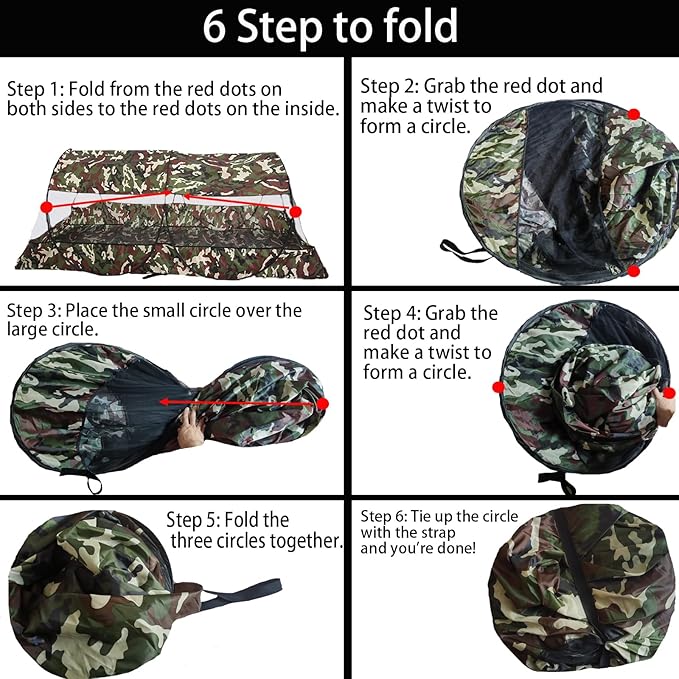 - No installation, ready to use: Pop-up mosquito nets are very easy to install because they pop into place when you take them out of the bag. Also, You just need 6 steps to fold and stored as a circle with a diameter of 34 cm