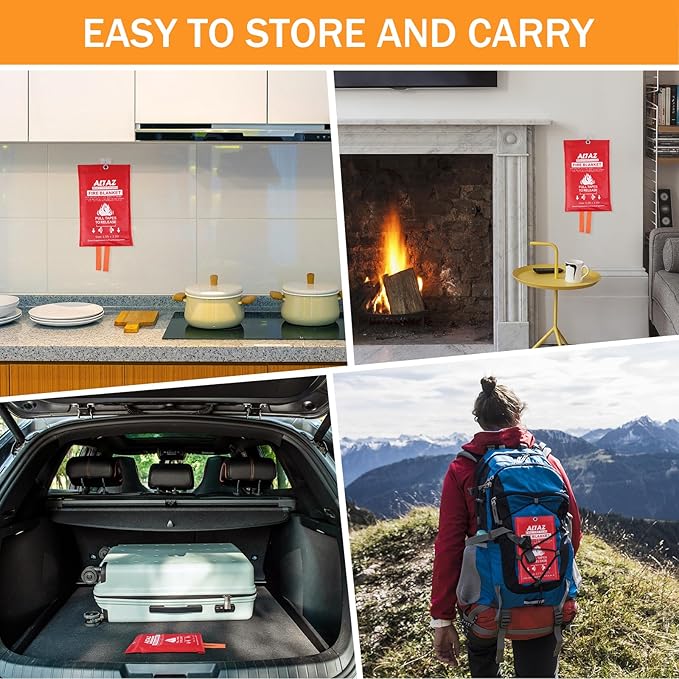 - 🔥【NO MESS IN KITCHEN】Put out small fires without a mess, no more traditional extinguishers. Our survival fire blanket for home and kitchen cut off oxygen supply to flames, tackling liquid, grease, and various fire types. Every household needs it. Hang the kitchen fire blanket on the wall of the house or boat. It is a vital addition to your fire safety survival kits.