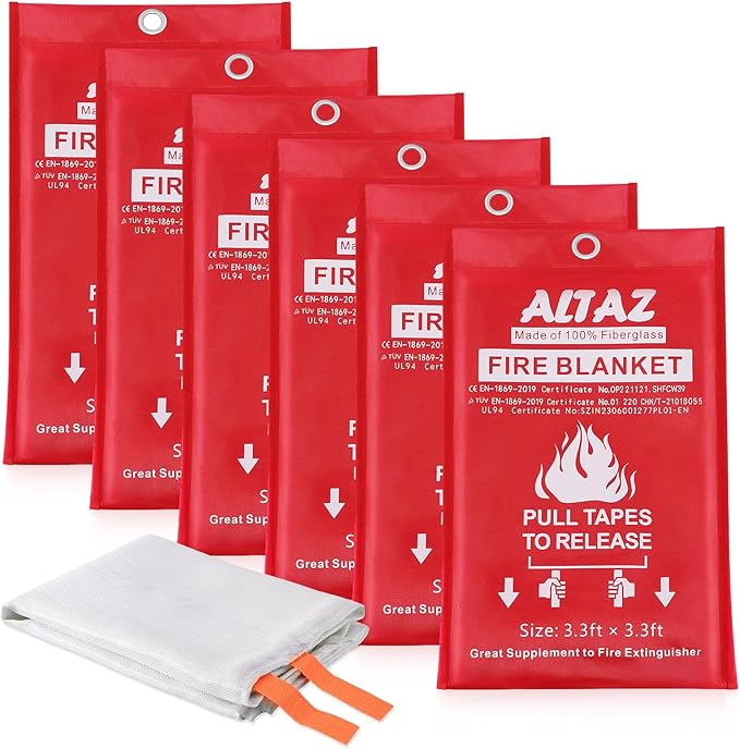 Altaz Fire Blanket Emergency for Home Kitchen - 39.4"x39.4" Flame Suppression Fiberglass Fire Extinguisher for Camping, Grill, Car, Office, Warehouse, Fireplace, Survival, Safety (6 Pack)…