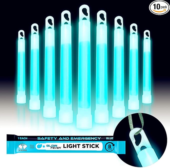 Emergency Safety Military Grade Glowsticks; 10PCS, 6" Ultra Bright Glow Sticks with 8 Hours Duration. Great for Hiking, Party, Camping, Blackouts, Hurricane, First Aid and Survival Kits (Blue)