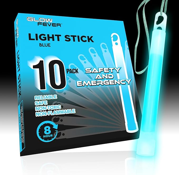 Emergency Safety Military Grade Glowsticks; 10PCS, 6" Ultra Bright Glow Sticks with 8 Hours Duration. Great for Hiking, Party, Camping, Blackouts, Hurricane, First Aid and Survival Kits (Blue)