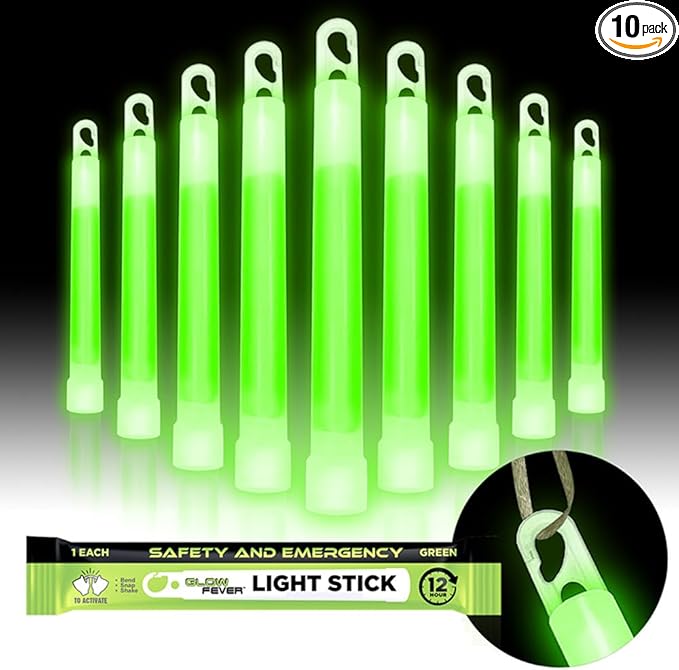 Emergency Safety Military Grade Glow Sticks, 10pcs, 6'' Ultra Bright Glow Sticks with 12 Hours Duration. Great for Hiking, Party, Camping, Blackouts, Hurricane, First Aid and Survival Kits (Green)
