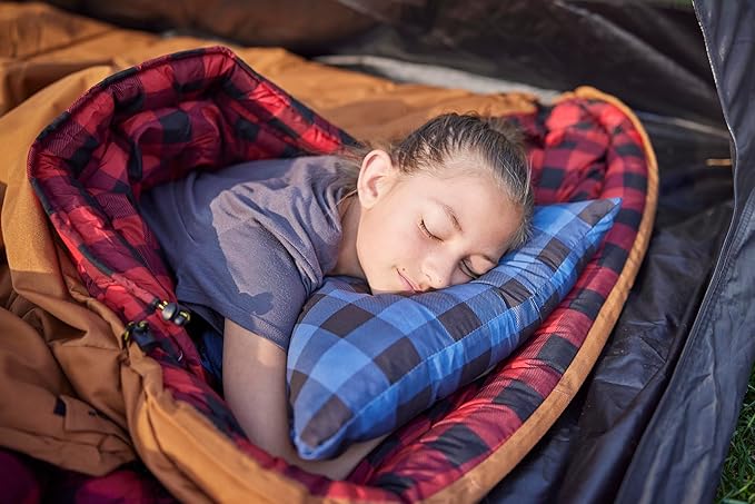 - Features a signature buffalo plaid print that's washable, and packs down tightly