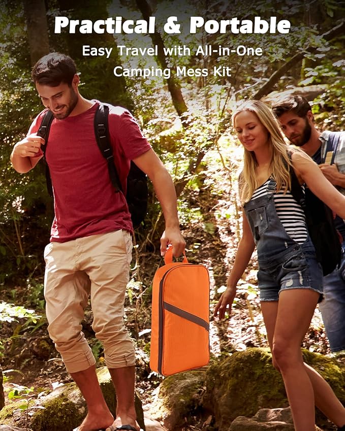 • Premium Quality & Durability:Crafted from food-grade stainless steel and heavy-duty PP material, our camping gear kit ensures long-lasting use without rust or deformation. It is non-toxic and BPA-free, providing a safe and reliable cooking experience