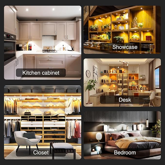 - 【2 CONTROL METHODS &WIDELY USED】MEKKLEON under cabinet light have two control methods,One is touch control and the other is remote control. Short touch for ON/OFF and change the colors. Long touch for brighter and dimmer. LED night lights indoors are widely used in cabinets, bedrooms, display cabinets,closets,nurseries,counters,kitchens,garages,basements,Shelf,hallways,gift display cases,car trunks etc,perfect for pregnant women,young children and many people who are afraid of the dark.