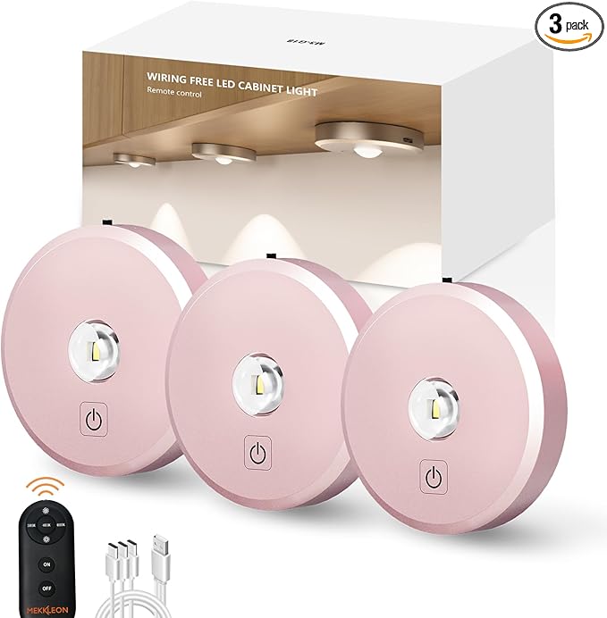 - 【3 Color Temperatures Puck lights with remote &Dimmable Tap Lights】 Our wireless LED puck lights provides 3 different color temperatures (3000K / 4500K / 6000K).MEKKLEON cabinet lights with remote control, stepless dimming by pressing +/- button to increase/decrease brightness, minimum 30LM, maximum 150LM. Easily press the K/☀ switch to choose the right amount/color of light to meet your different needs. Rechargeable under cabinet lighting saves energy and money for your family