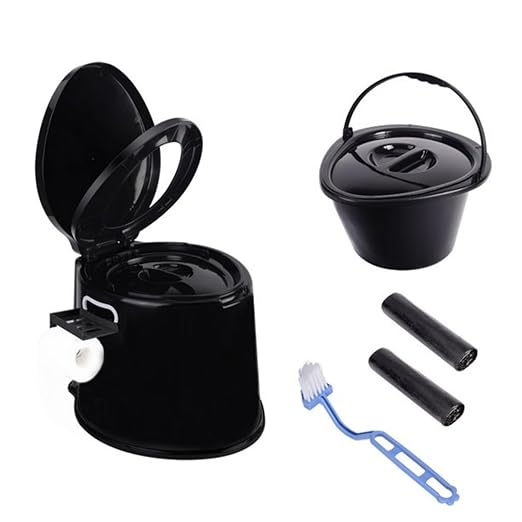 Camping Toilet, Portable Toilet for Adults & Kids, 5.3 Gallon Camping Toilet with Detachable Inner Bucket and Removable Toilet Paper Holder (Black)