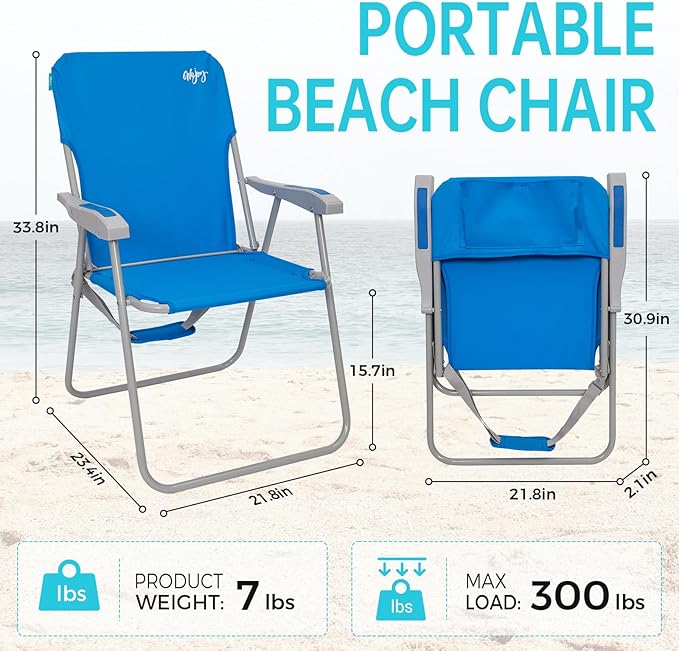 #WEJOY Folding Beach Chair for Adults, Lightweight Beach Chair with Shoulder Straps, High Back Beach Chairs with Hard Armrest, Supports 300lbs for Beach Lawn Concert