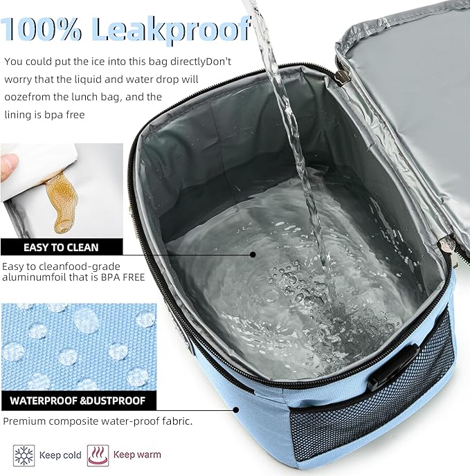 BEIMILY Lunch Box for Men/Women,Small Insulated Lunch Bag,Reusable LunchBox for work Picnic Hiking Beach,Leakproof Soft Cooler Tote Bag Organizer with Adjustable Shoulder Strap for Adults (Sky Blue)