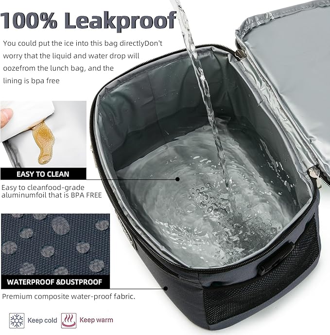 - Insulation/Cooling:Insulated lunch bag for women men is lined with food-grade PEVA material, filled with thicken insulation pearl cotton inside, and 600D polyester composite fabric on the outside, small lunch cooler bag is designed with triple insulation to keep food cold/warm /Fresh for hours, even better if you put an ice pack on the bottom, perfect for meals on the go, picnics, office lunches, road trips, the beach, and more.