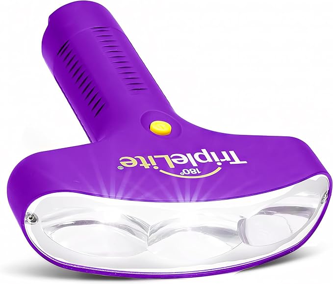 180 Degree LED Flashlight - Super Bright Light – High 600 Lumen, Water Resistant Light for Camping accessories, Outdoors, Emergency Flashlight- Patented -Purple