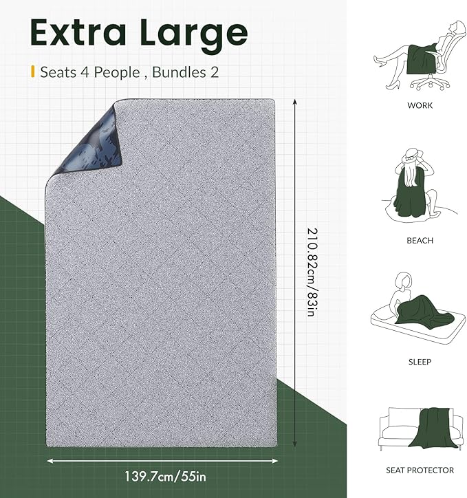 - Large Size & Multi-functional: With a size of 83*55 inches, this large outdoor blanket can accommodate 3-6 people to sit, making it suitable for various scenarios. It is an ideal choice for both indoor and outdoor activities. You can use the woobie blanket for outdoor activities such as hiking, camping, backpacking, picnics at the park, beach parties, and watching outdoor sports events. It can also be used indoors as a pet blanket, seat protector, or a cozy throw blanket.