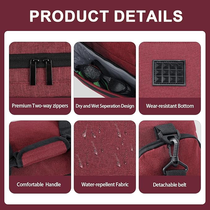 - ๐๐๐ญ ๐๐จ๐๐ค๐๐ญ & ๐๐ก๐จ๐ ๐๐จ๐ฆ๐ฉ๐๐ซ๐ญ๐ฆ๐๐ง๐ญ: The wet pocket is perfect for storing sweaty clothes or towels after your workout; The shoe compartment allows you to easily store and access your gym shoes without dirtying the main compartment