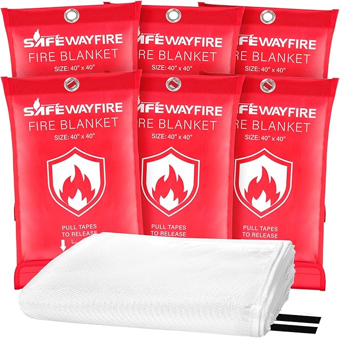 Safewayfire Emergency Fire Blanket - 6 Pack, 40'' x 40'' Fire Suppression Blanket for Kitchen, Fireproof Fiberglass Blanket for Home Safety, Swift Safe Fiberglass Fire Blankets