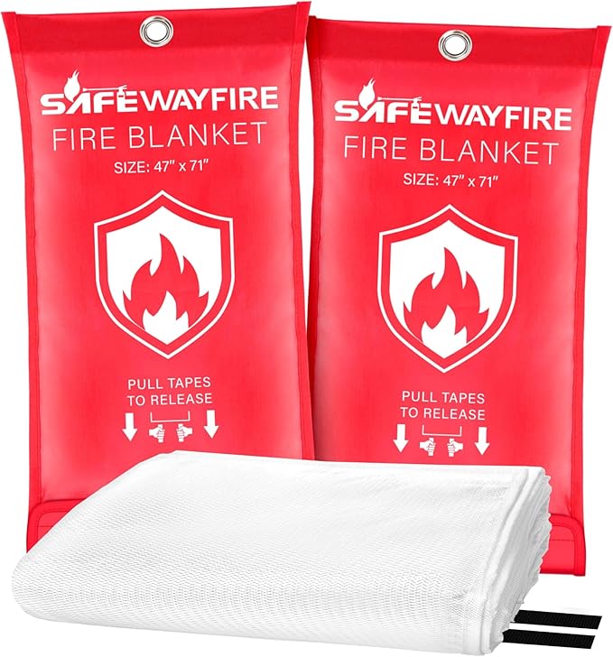 Safewayfire Emergency Fire Blanket - 2 Pack, 47'' x 71'' Fire Suppression Blanket for Kitchen, Fireproof Fiberglass Blanket for Home Safety, Swift Safe Fiberglass Fire Blankets