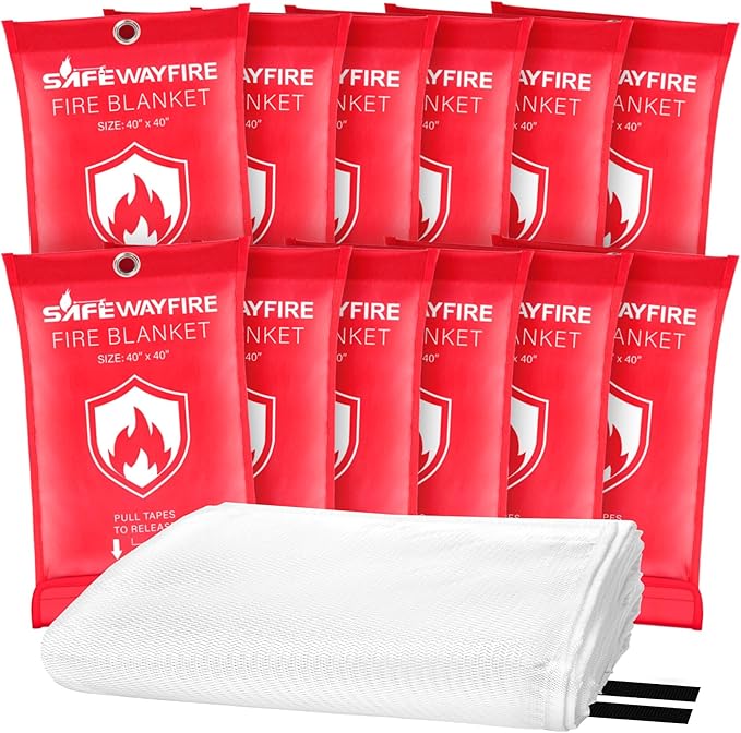 Safewayfire Emergency Fire Blanket - 12 Pack, 40'' x 40'' Fire Suppression Blanket for Kitchen, Fireproof Fiberglass Blanket for Home Safety, Swift Safe Fiberglass Fire Blankets