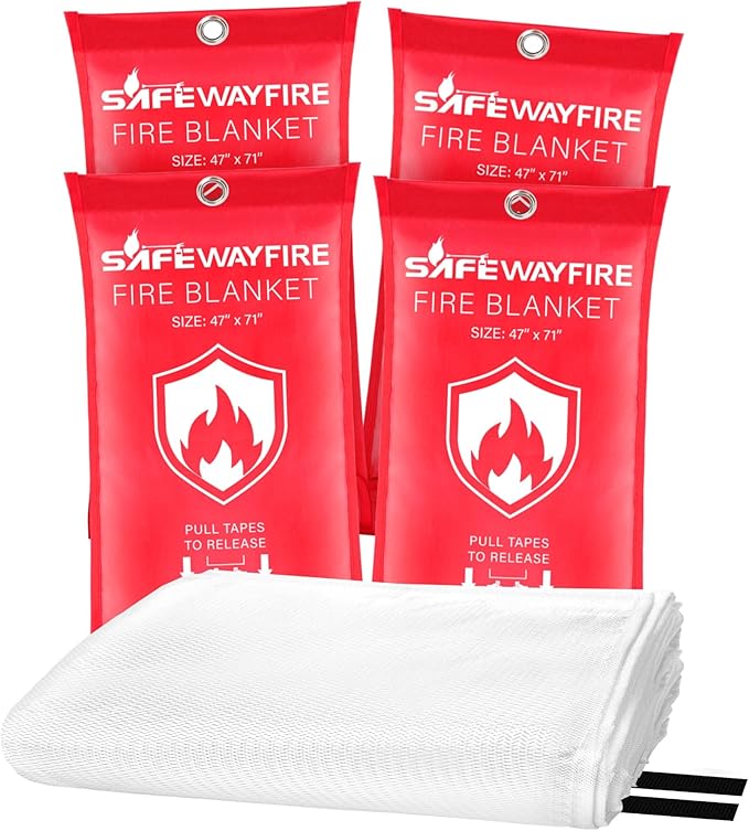 Safewayfire Emergency Fire Blanket - 4 Pack, 47'' x 71'' Fire Suppression Blanket for Kitchen, Fireproof Fiberglass Blanket for Home Safety, Swift Safe Fiberglass Fire Blankets