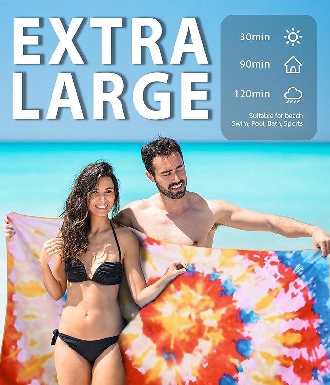 - ☀️[ Microfiber Lightweight ] High quality microfiber that absorbs water much faster than ordinary fabric! Eco-friendly, no faded and no smell. You can easily take it portable to avoid wet and cold on the beach. Multiple size options perfect for all adults and children.