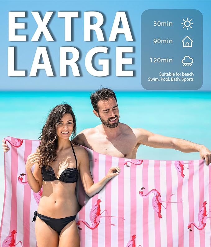 Microfiber Beach Towel – Flamingo Quick Dry Lightweight Sand Free Oversized Large Towel Accessories Travel Must Have Swim Pool Yoga Camping Gear Summer Cruise Ship Essentials Cloud Compact Gift