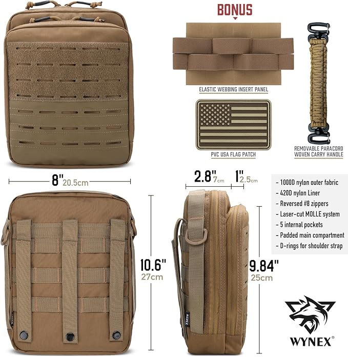 WYNEX Tactical Molle Admin Pouch, Utility EDC Pouch Organizer Modular Tool Pouch of Double Layer Design Medical EMT Attachment Bag Large Capacity with Elastic Webbing Insert Panel