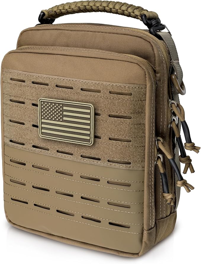 - THREE WAYS TO CARRY: Tactical Admin Pouch features three vertical back straps with metal snaps compatible with all Molle/PALS system like tactical backpacks and vests. Three exterior webbing straps for vertical/horizontal carry with removable paracord woven carry handle. You can use the shoulder strap (NOT Included) to attach 2 D-rings for hands-free.