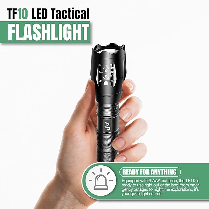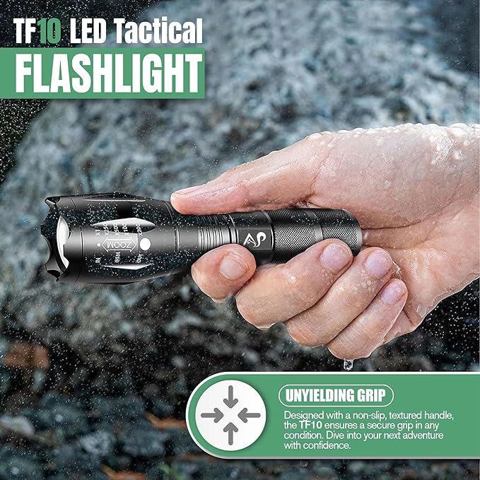 A&P Tactical Flashlight - High Lumens Flash Light, Flashlights for Emergencies, camping lights & lanterns, 5 Modes, Waterproof, Super Bright, Focus, Shock Resistant, Portable, Hiking, Outdoor Activity