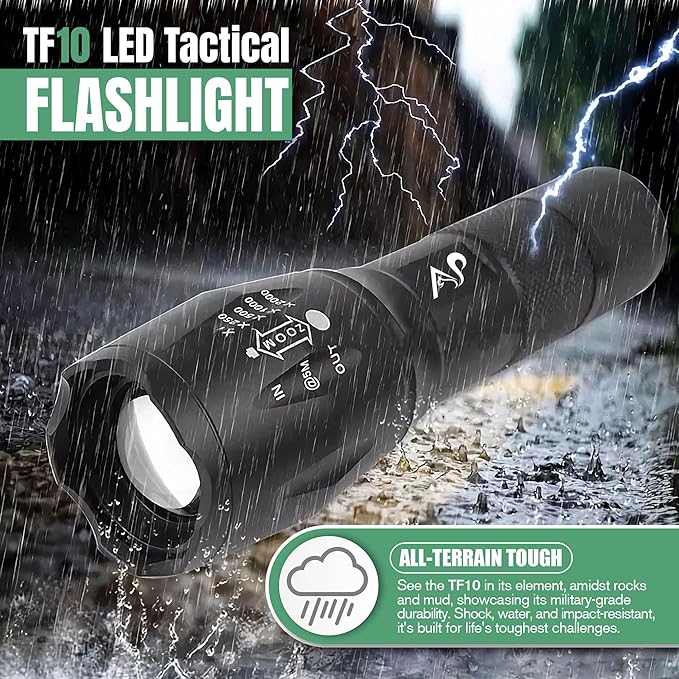 - POWERFULL BRIGHTNES: This Flashlight high lumens, ideal for various activities. Indispensable flashlights for emergencies, serves well for those needing a reliable light source in any situation.