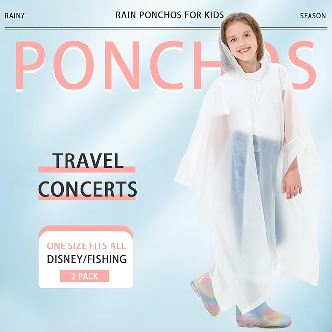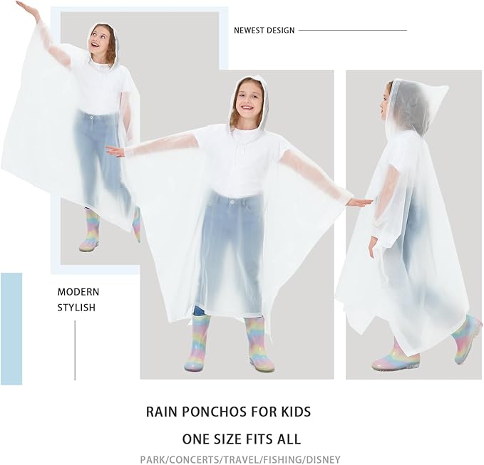 - ⛰️【VERSATILE FOR OUTDOOR ACTIVITIES】Perfect for a trip to Disneyland World, parks, sports events, travel adventures, running sessions, hiking, camping, cycling, or even as Halloween costumes. These kids ponchos are designed for all kinds of outdoor activities. They are compact enough to fit in your backpack as essential survival gear or conveniently store at home or in the car for unexpected rainfalls.