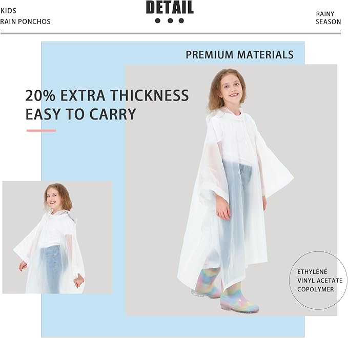 - ♻️【ECO-FRIENDLY & DURABLE MATERIAL】Our travel rain ponchos are crafted from new eco-friendly EVA material, making them non-toxic, odorless, tear-resistant, and 100% waterproof. These reusable and durable ponchos are not only safe for the environment but also offer excellent protection during unexpected showers.