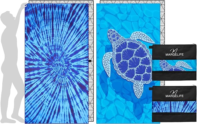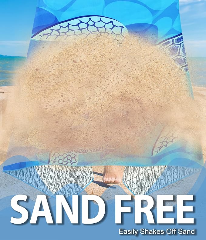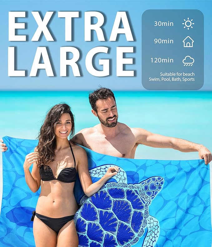 Microfiber Beach Towel – Quick Dry Lightweight Sand Free Oversized Large Towel Accessories Swim Pool Yoga Camping Summer Cruise Ship Essentials Cloud Compact Sandproof Gift (Turtle Shadow,71" 32")
