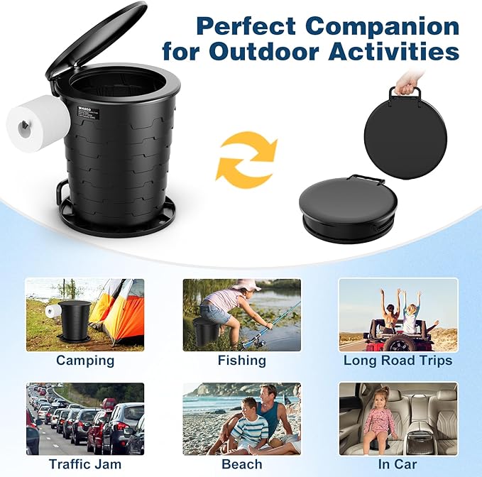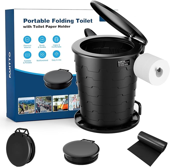 Portable Toilet for Adults, Retractable Porta Potty for Camping with Toilet Paper Holder and Lid, Foldable Toilet Adjustable Height for Camping, Hiking, Fishing, RV Travel, Road Trips