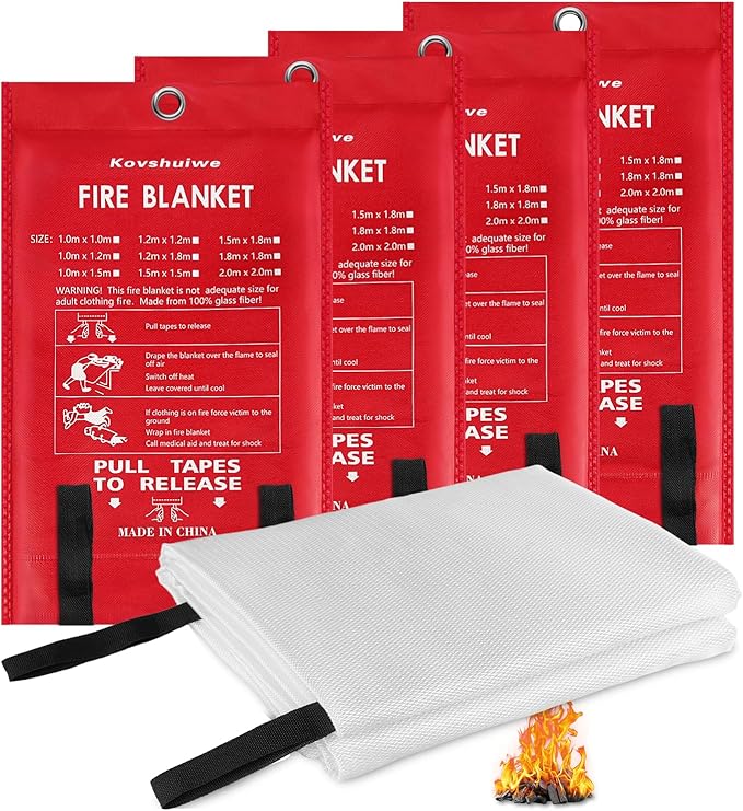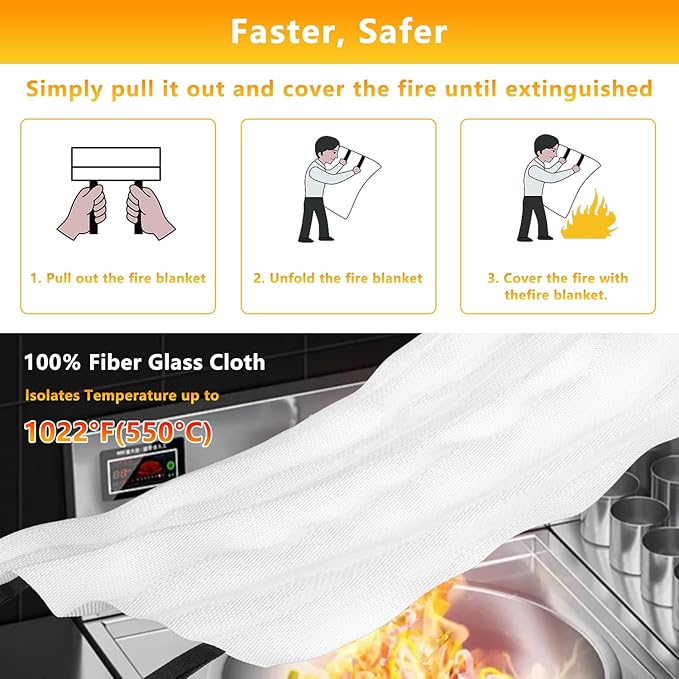 - 【Fire Blankets for Home Kitchen】 It is an essential for every household safety as an emergency survival protective fire blanket.. Fiberglass fire blanket can cut off oxygen and help people in a sudden fire. The flexible flame-retardant fiberglass blanket can be wrapped around a person or thrown over a fire to smother flames. Which is great for safety in kitchen, fireplace, grill, home, boats, cars, camping, welding, office.
