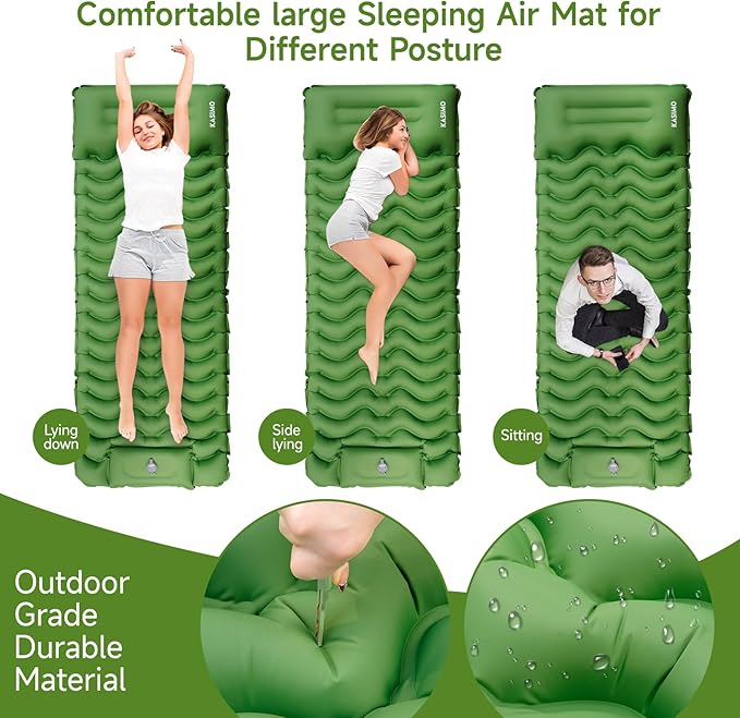 - 【Innovation Design】Do You Want to sleep comfortably anywhere? KASIMO camping sleeping pad is made special with body mapping technology. Also the camping pad is designed with buttons on the side, you can easily connect TWO pads to create a double bed, making a wider space for more comfort sleeping. Perfect for you to go camping with your families and friends. A must-have camping gear - great sturdy and super comfortable - great for any sleep position!