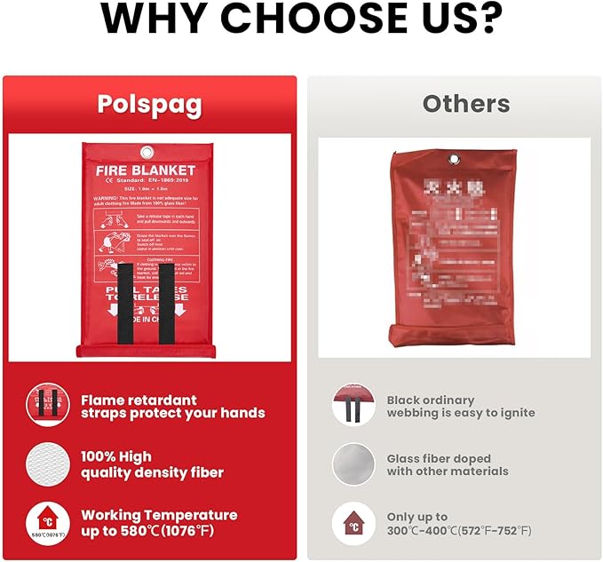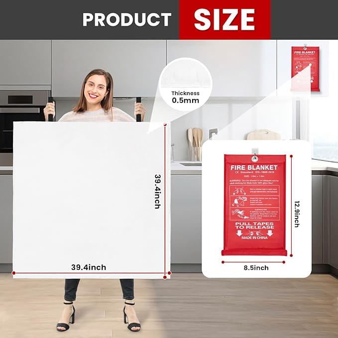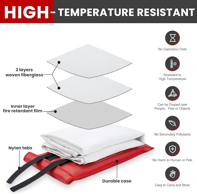 - 𝟐𝟎𝟐𝟒 𝐔𝐏𝐆𝐑𝐀𝐃𝐄𝐃 𝐕𝐄𝐑𝐒𝐈𝐎𝐍,𝐇𝐈𝐆𝐇-𝐓𝐄𝐌𝐏𝐄𝐑𝐀𝐓𝐔𝐑𝐄 𝐑𝐄𝐒𝐈𝐒𝐓𝐀𝐍𝐓: The fire suppression blanket can isolate high temperatures up to 1076℉( 550℃), enabled by it's Composed of two layers of 100% flame retardant woven fiberglass fabric and an inner layer of fire retardant film, meets safety blanket standards set by Standard:EN 1869:2019, helping people extinguish the fire source promptly in case of a sudden fire.