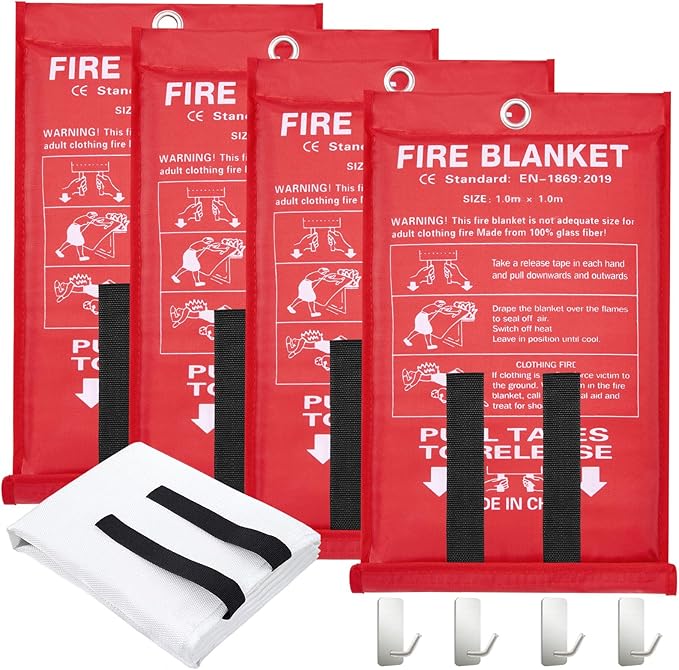 Emergency Fire Blanket for Home,4 Pack Fire Suppression Blanket for Kitchen House Cooking Office Camping, Fiberglass Flame Retardant Blanket, Fire Safety Blanket, 39.3 * 39.3” with Hooks