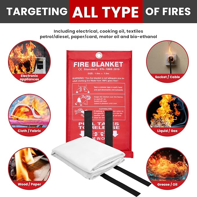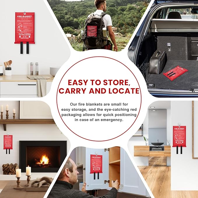 - 𝐀 𝐌𝐔𝐒𝐓 𝐇𝐀𝐕𝐄 SURVIVAL FIRE BLANKET:Buy our highly reliable and effective emergency fire retardant blanket with complete confidence! These blankets are versatile and can be used in various settings such as the kitchen, backyard, fireplace, grill, office, camping trips, or as an essential component of your vehicle survival kit. By keeping our fire blankets readily accessible, you can be prepared to handle fire emergencies swiftly and effectively.