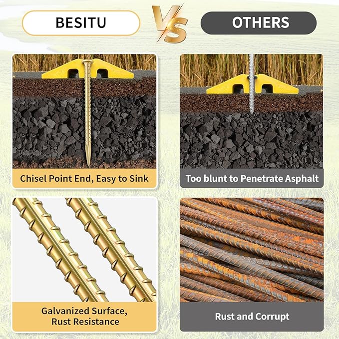 - 【 TWO YEAR WARRANTY】10-pack road spikes. Order Besitu ground stakes today, you would love it! If not, please feel free to contact us, we would provide the best solution within 12 hours.