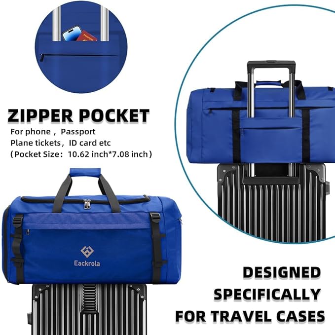 Eackrola Extra Large Sports Gym Bag, Travel Duffel bag with Wet Pocket & Shoes Compartment for men women, 85L, Lightweight (Blue)