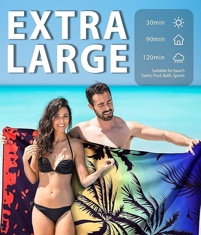 - ☀️[ Microfiber Lightweight ] High quality microfiber that absorbs water much faster than ordinary fabric! Eco-friendly, no faded and no smell. You can easily take it portable to avoid wet and cold on the beach. Perfect size for adults or kids.