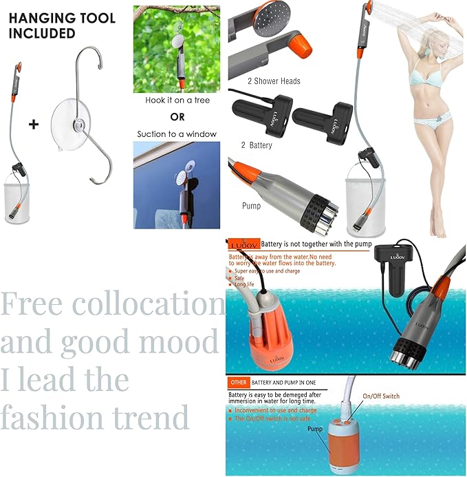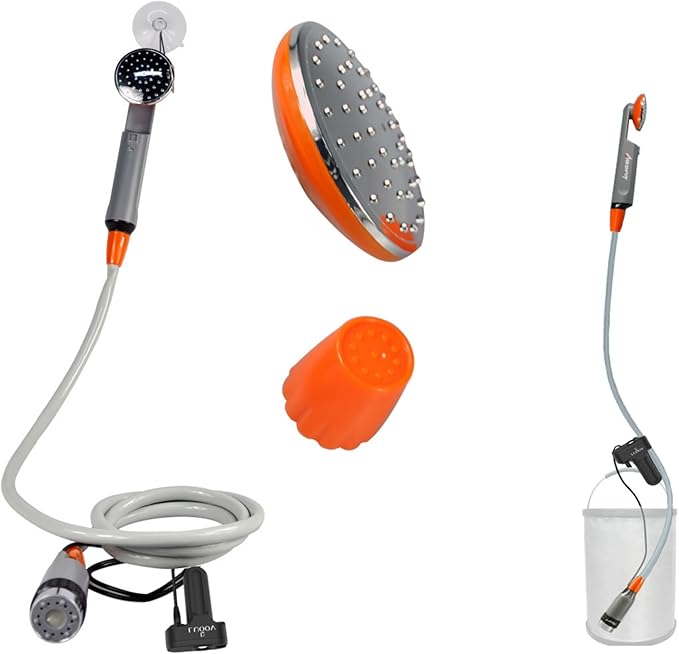 - 3. Easy Assembly and Operation: Just fully submerse the pump in your bucket/tub of water and turn the motor on,it will pumps water from bucket into steady, gentle shower stream and you get a nice flowing shower.