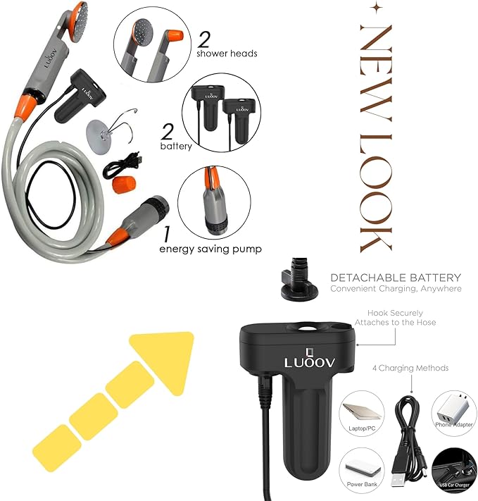 - 2. Durable and Powerful: We provide two batteries, one can work for up to 45-60 minutes with a full charge ,two for up to 90-120 minutes, which can make sure you will have a constant happy shower.The water flow is up to 1 gal/min (4 L /min),offers ideal and powerful water pressure to help make bathing easier.